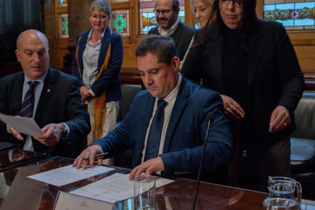 Sebastián Valdomir valoró que “el fortalecimiento de los vínculos entre la prensa y el Parlamento del Uruguay; y que la firma del Convenio es un compromiso para seguir fortaleciendo el derecho a la libertad de expresión y el derecho a informarse, para que los trabajadores y trabajadoras de la Prensa lo hagan en esta Casa de la mejor manera posible”.