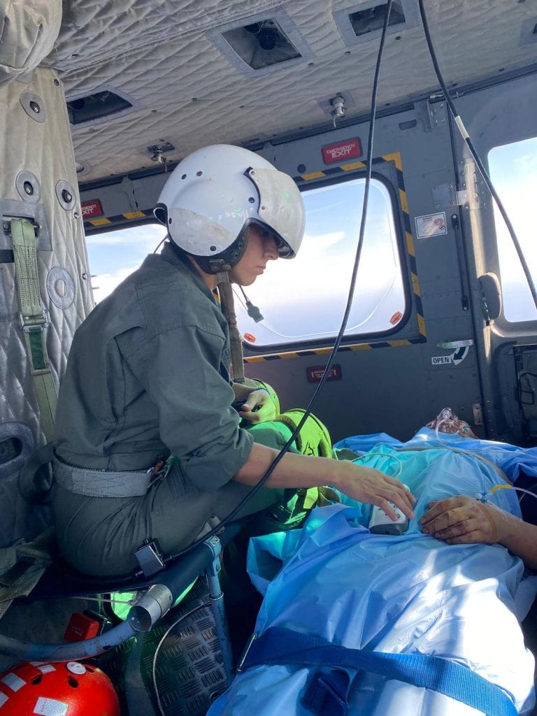 Una vez abordo, el doctor toma contacto con el paciente, el cual es preparado para su evacuación encontrándose estable.