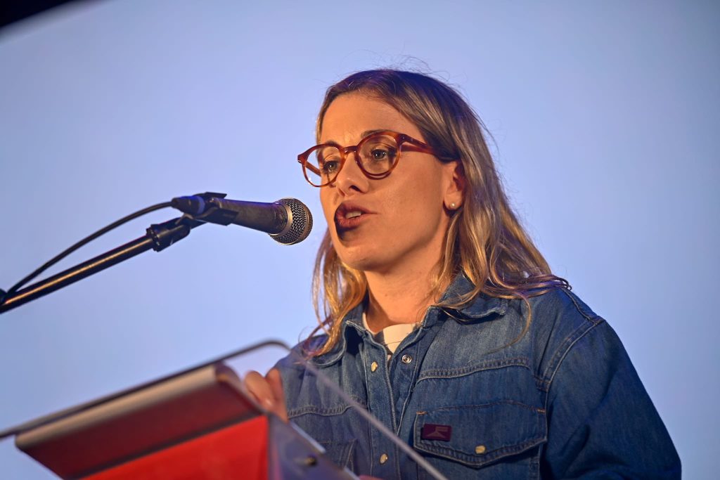 En su intervención, Florencia Astori recordó los orígenes del Frente Amplio y destacó el papel que han tenido “las mujeres y las disidencias”, en la construcción del proyecto político.